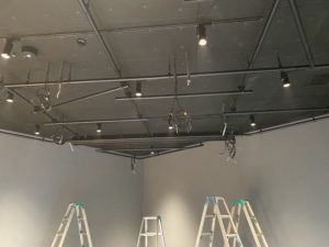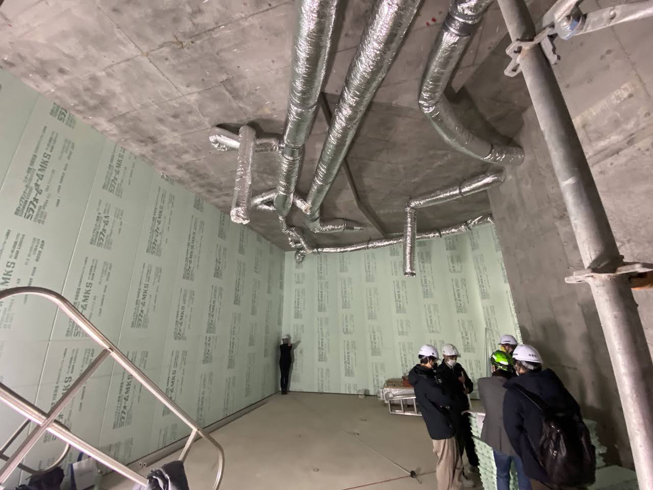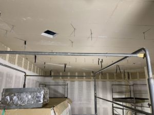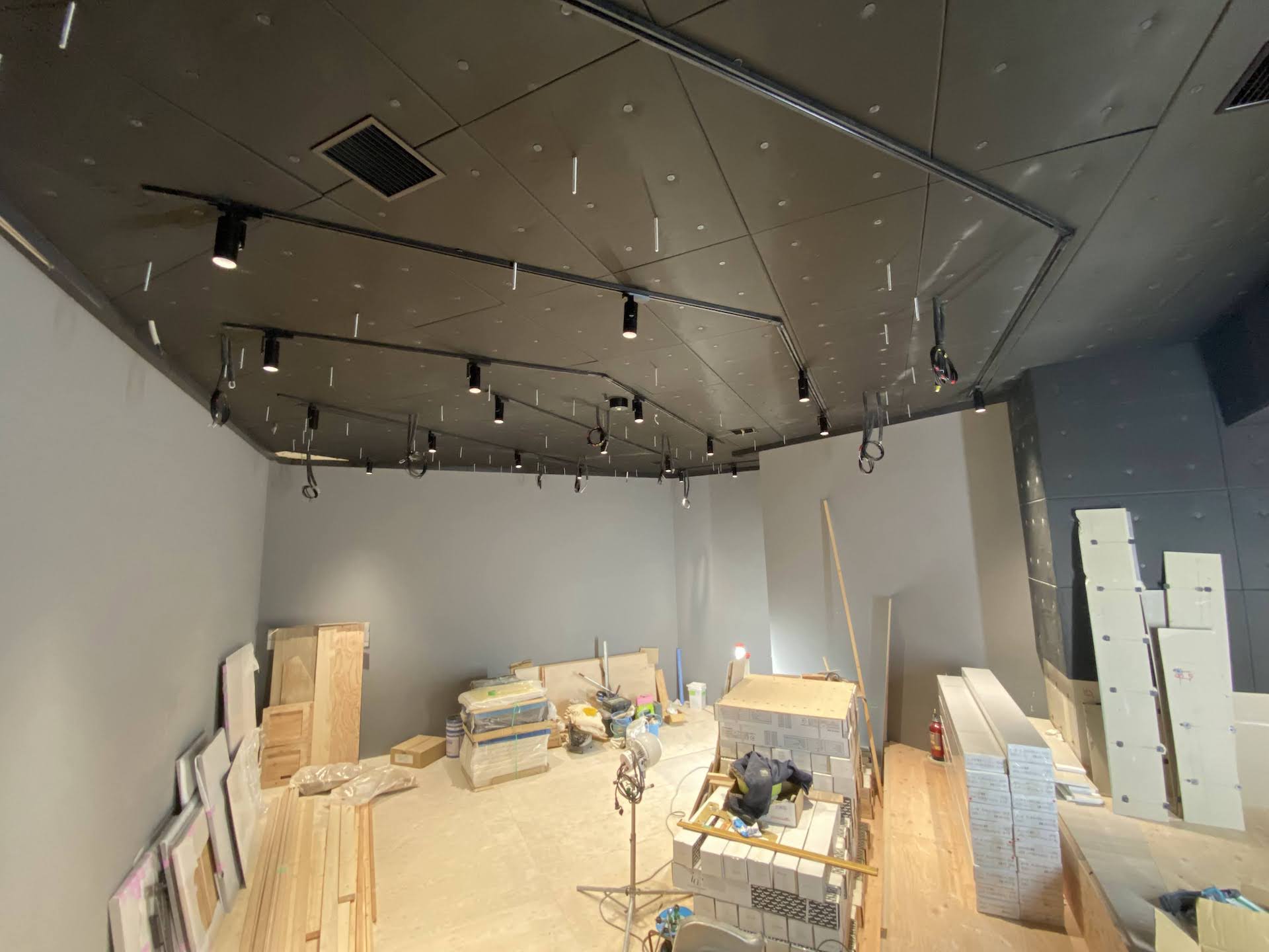 工事初期の状況で、壁や天井から空調ダクトが出ています。