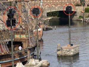 つまり、すごい数のスピーカが設置されています。見えない壁や草木の中にもスピーカはあります。