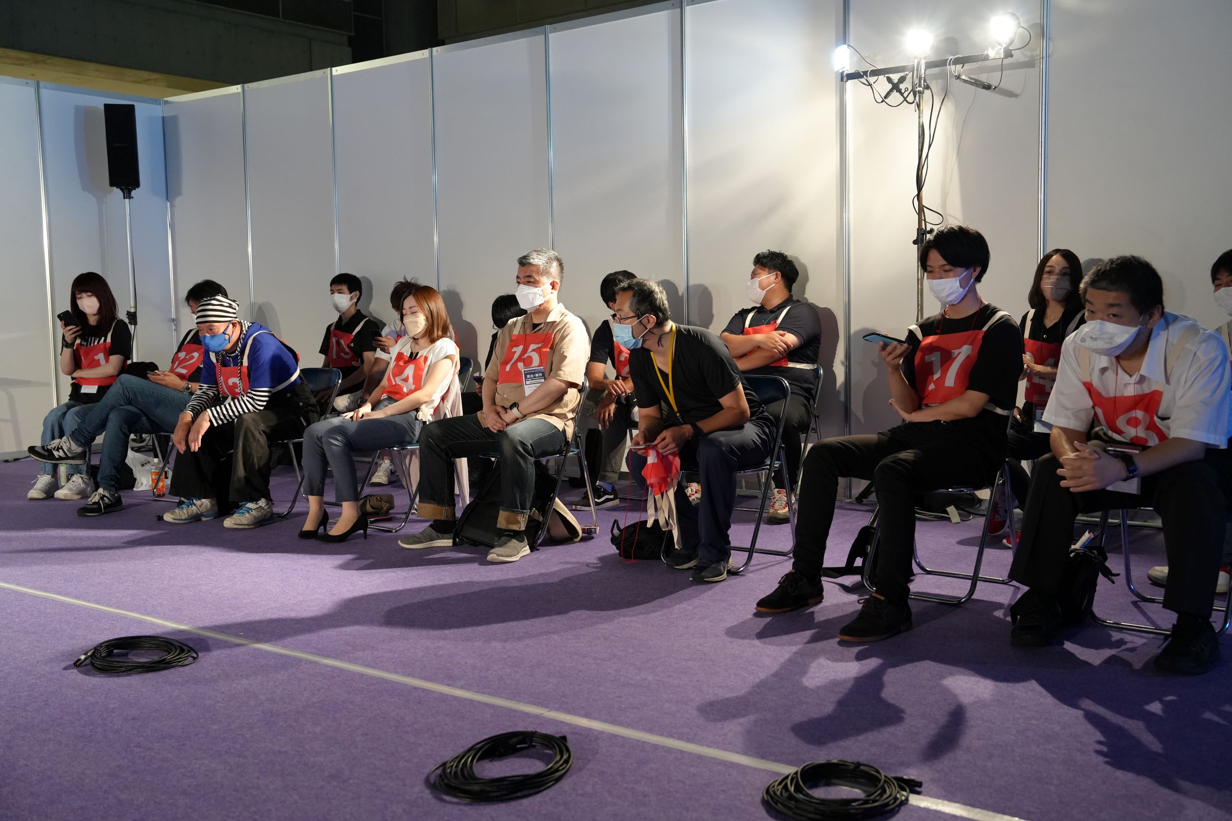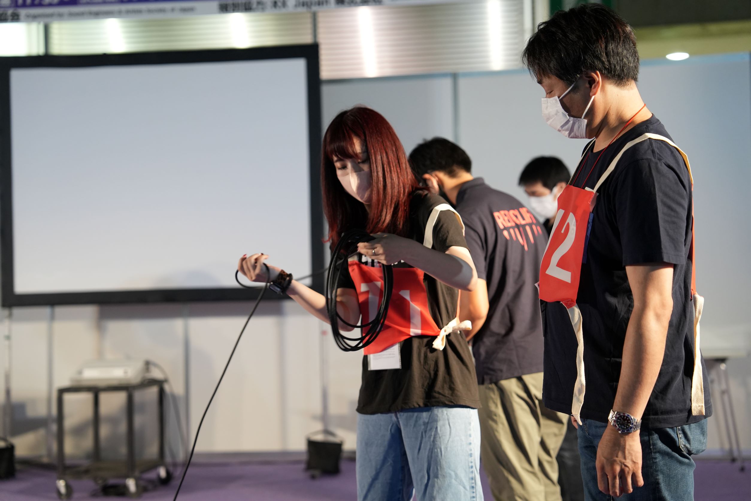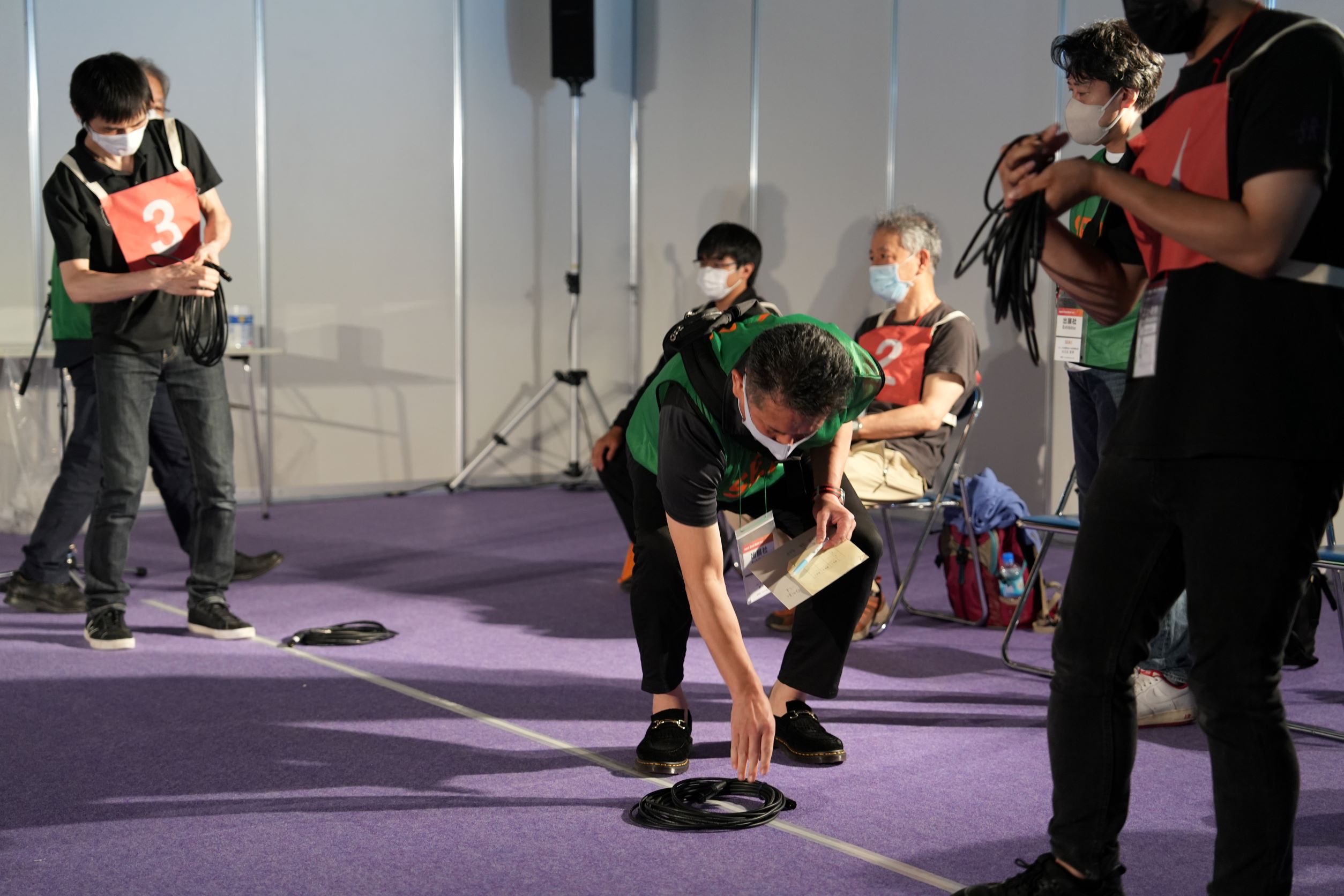 2022.10.26 ユニークなイベント 音響家協会主催のマイクケーブル早まき競争です。 賞金は10万円 参加者は、劇場の音響管理のプロの人たちばかりです。 競技は始まっています 女性も参加していました 優勝者と準優勝者 手には10万円