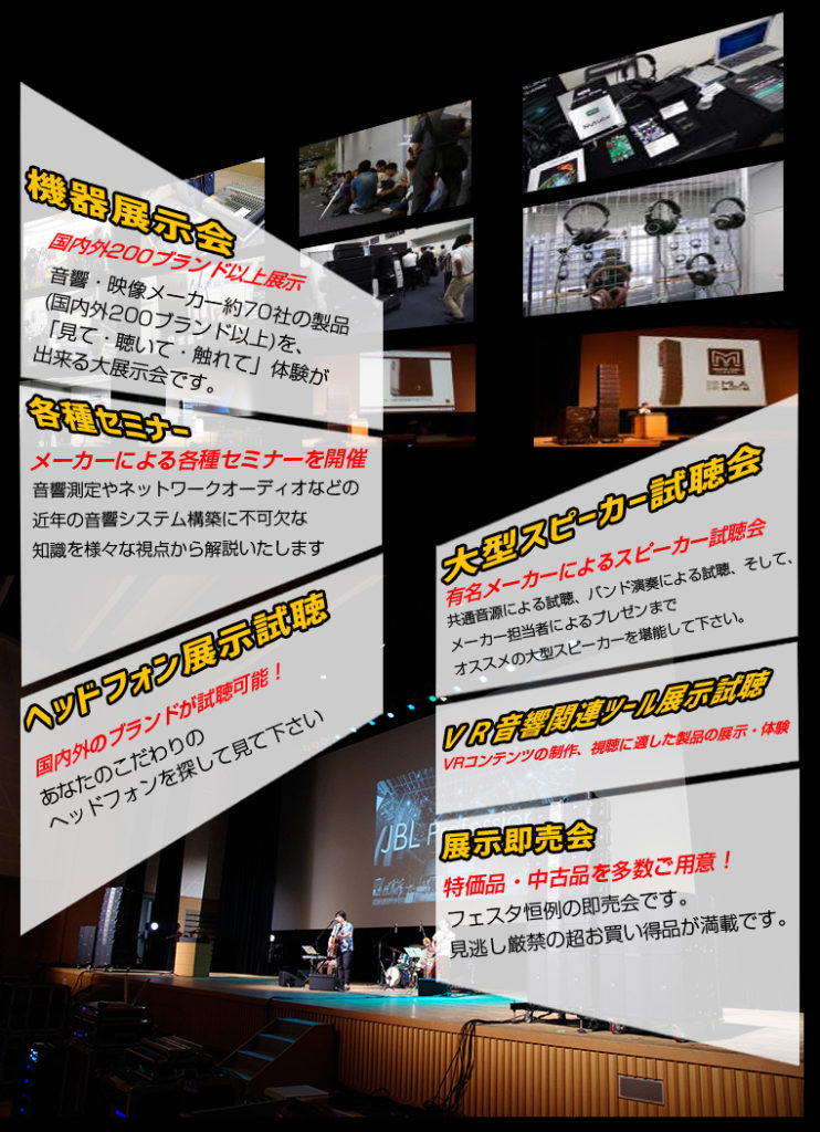 2日間のうち、音響セミナーや展示即売会なども開催されます。