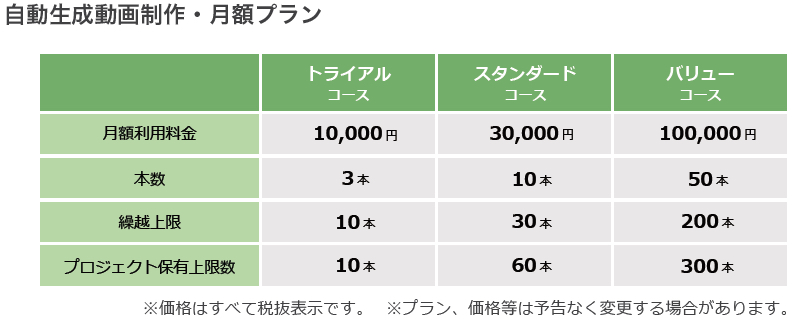 利用料金は月額 10,000-,30,000-,100,000-の3種類で以下の内容となっています。