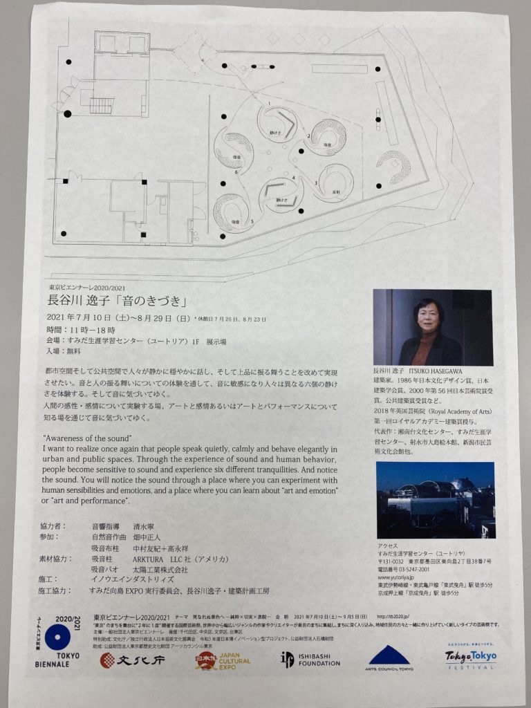 長谷川逸子先生の「音のきづき」のテーマで墨田生涯学習センターで展示がしてあります。